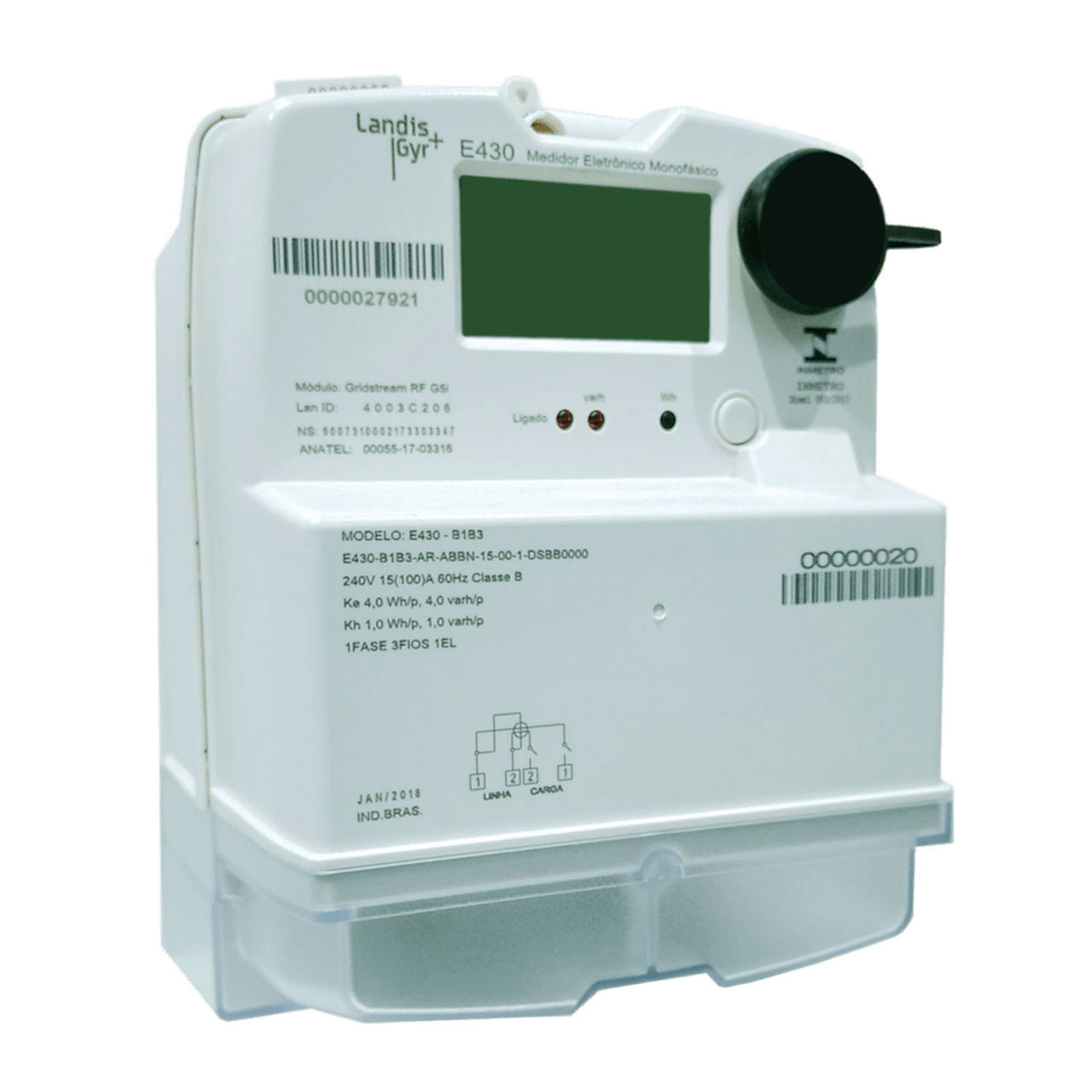A família E430 engloba os medidores eletrônicos inteligentes monofásicos da Landis+Gyr, indicados para uso em grupo B, para medição de energia e demanda, ativa, reativa indutiva e reativa capacitiva, em diferentes postos horários, com possibilidade de medição em quatro quadrantes ou dois quadrantes.